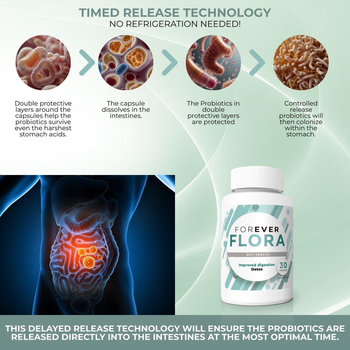 ✅ Delayed-release technology ensures probiotics reach the intestines alive